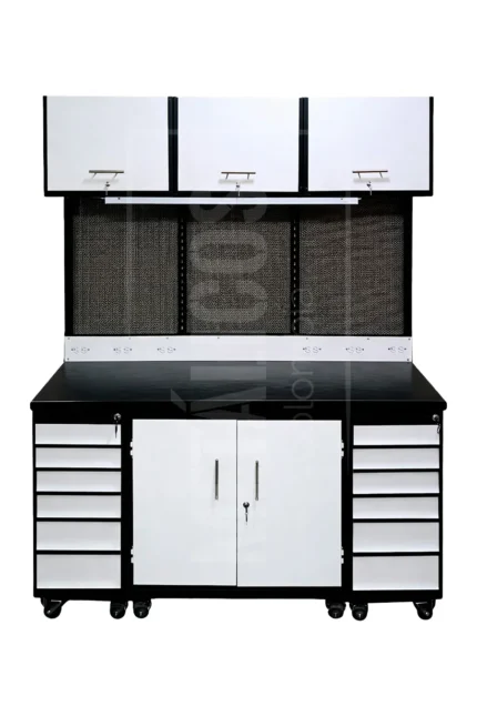 Banco de trabajo rojo mixto puertas malla